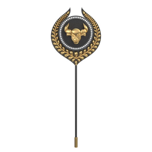 Taurus Zodiac, Leaf Constellation Lapel with 18kt Gold & Black Ruthenium Plating and Enamel on Brass.