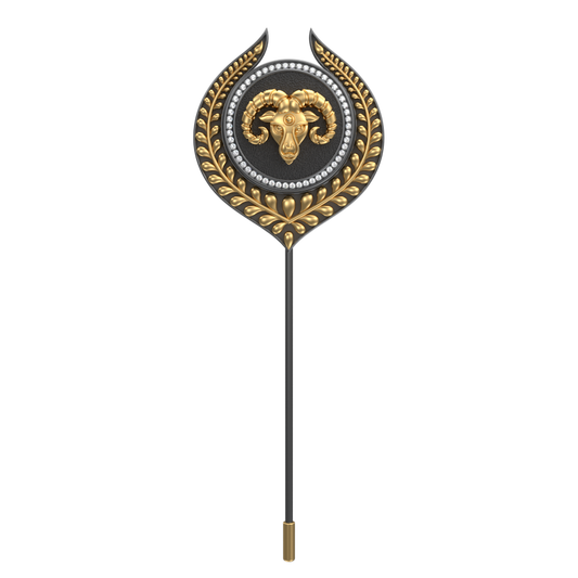 Aries Zodiac, Maple Constellation Lapel with 18kt Gold & Black Ruthenium Plating and Enamel on Brass.