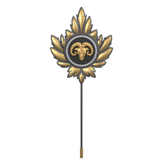 Aries Zodiac, Leaf Constellation Lapel with 18kt Gold & Black Ruthenium Plating and Enamel on Brass.