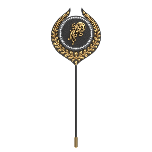 Aquarius Zodiac, Leaf Constellation Lapel with 18kt Gold & Black Ruthenium Plating and Enamel on Brass.