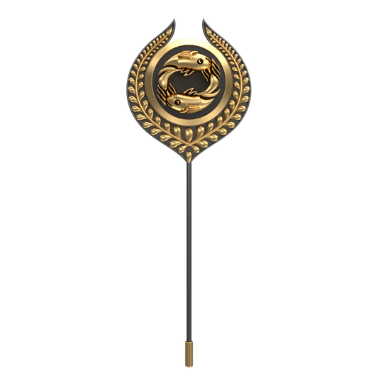 Pisces Zodiac, Leaf Constellation Lapel with 18kt Gold & Black Ruthenium Plating and Enamel on Brass.