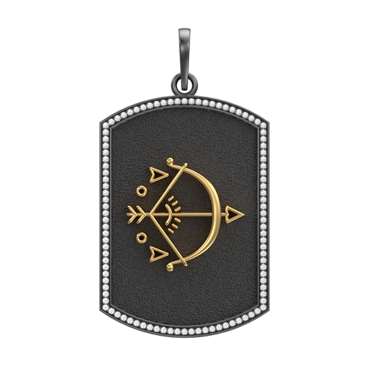 Sagittarius Zodiac Luxe, Constellation Pendant with CZ Diamonds, 18kt Gold & Black Ruthenium Plating on Brass.