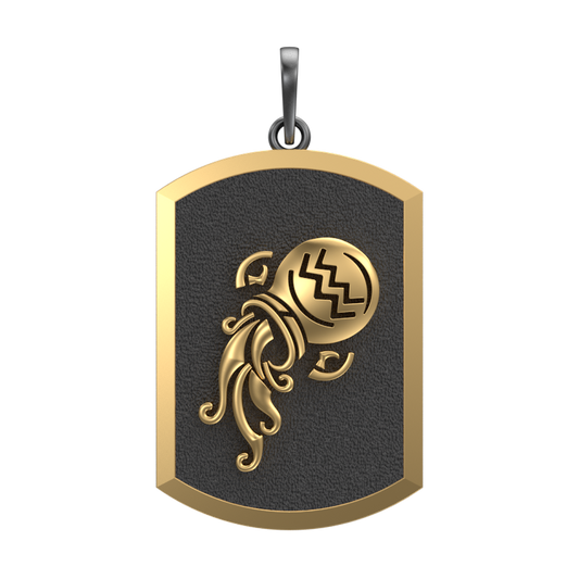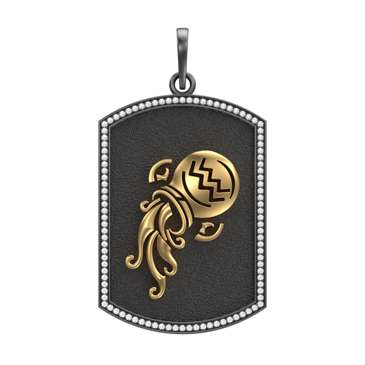 Aquarius Zodiac, Constellation Pendant with 18kt Gold & Black Ruthenium Plating on Brass.