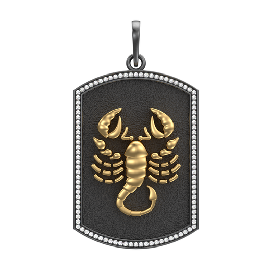 Scorpio Zodiac Luxe, Constellation Pendant with CZ Diamonds, 18kt Gold & Black Ruthenium Plating on Brass.