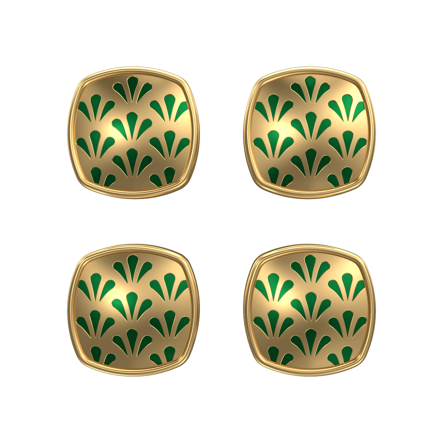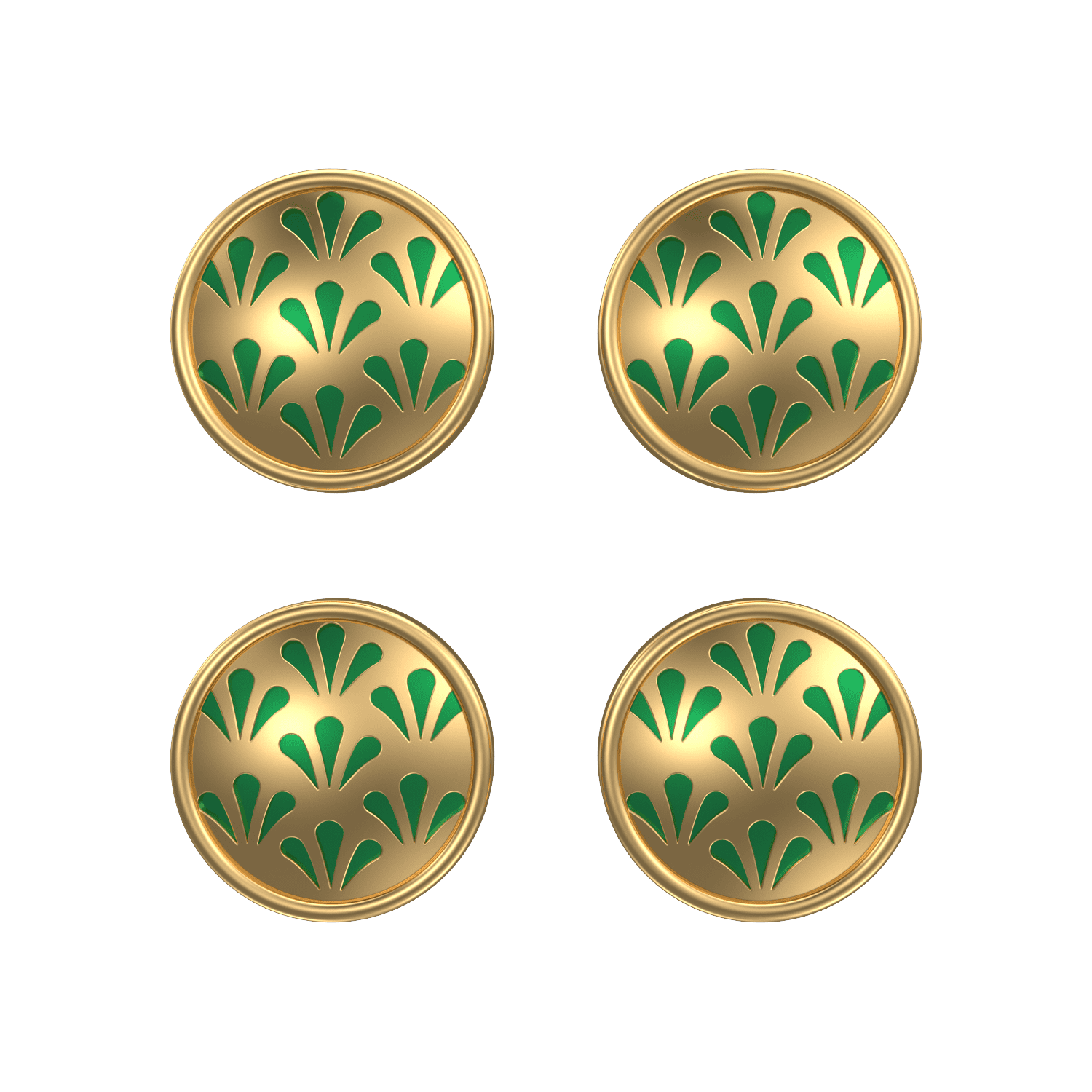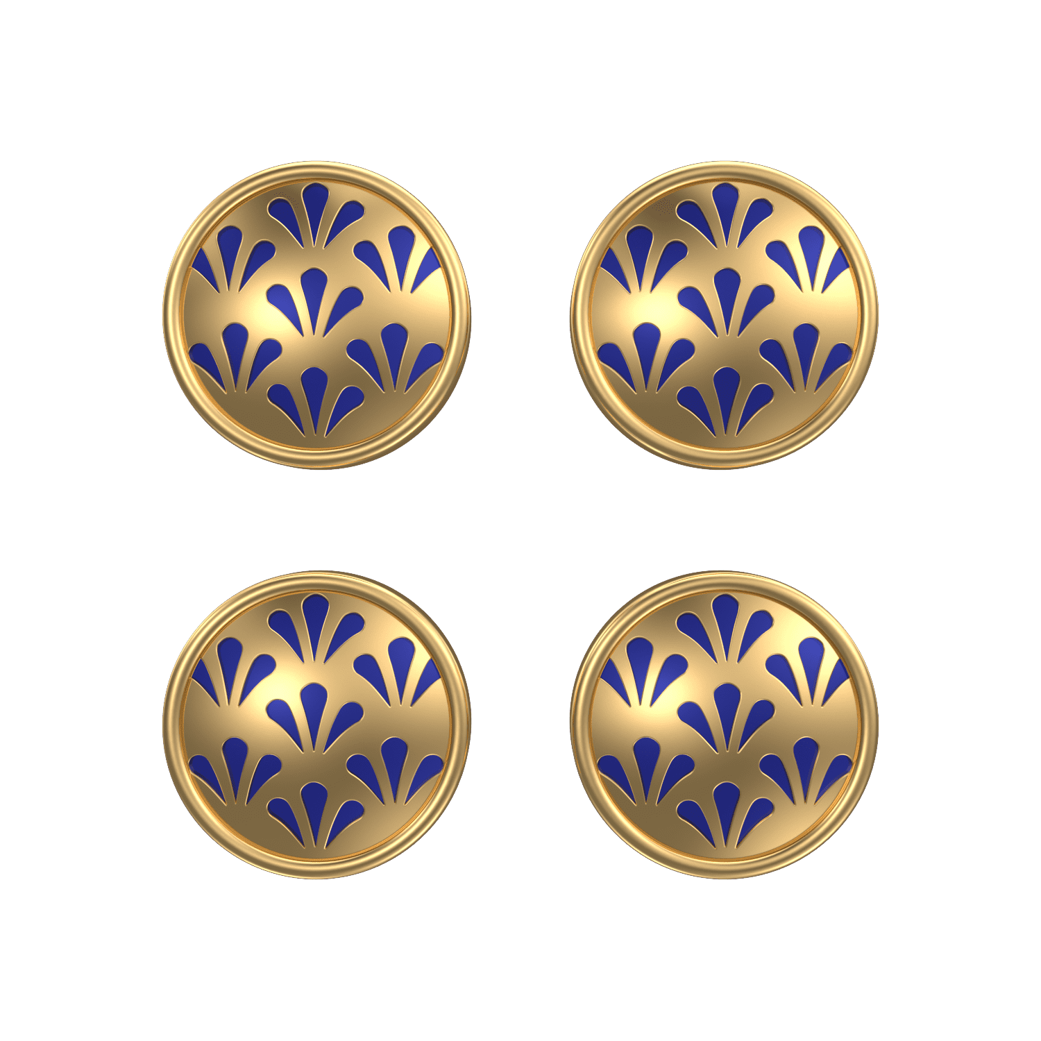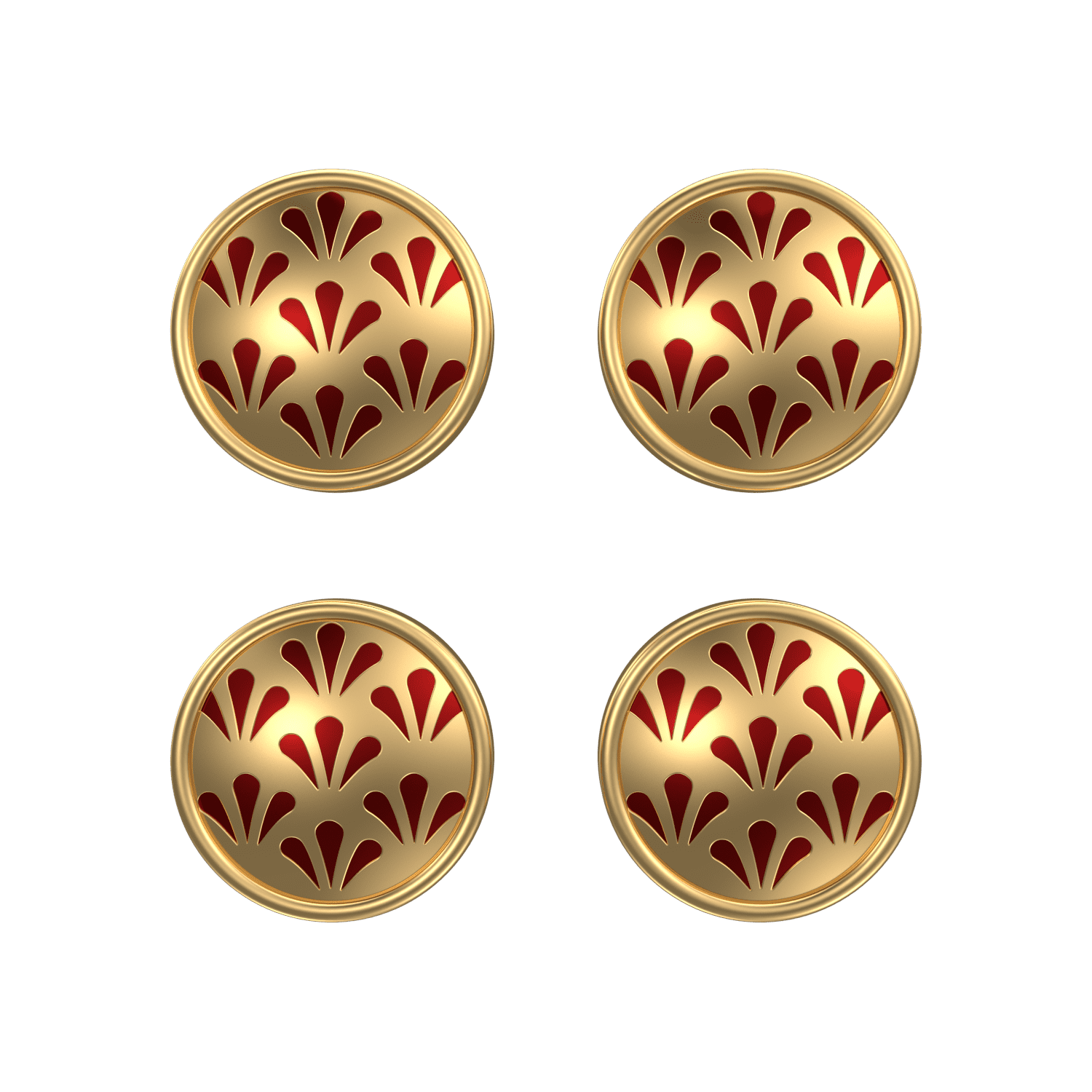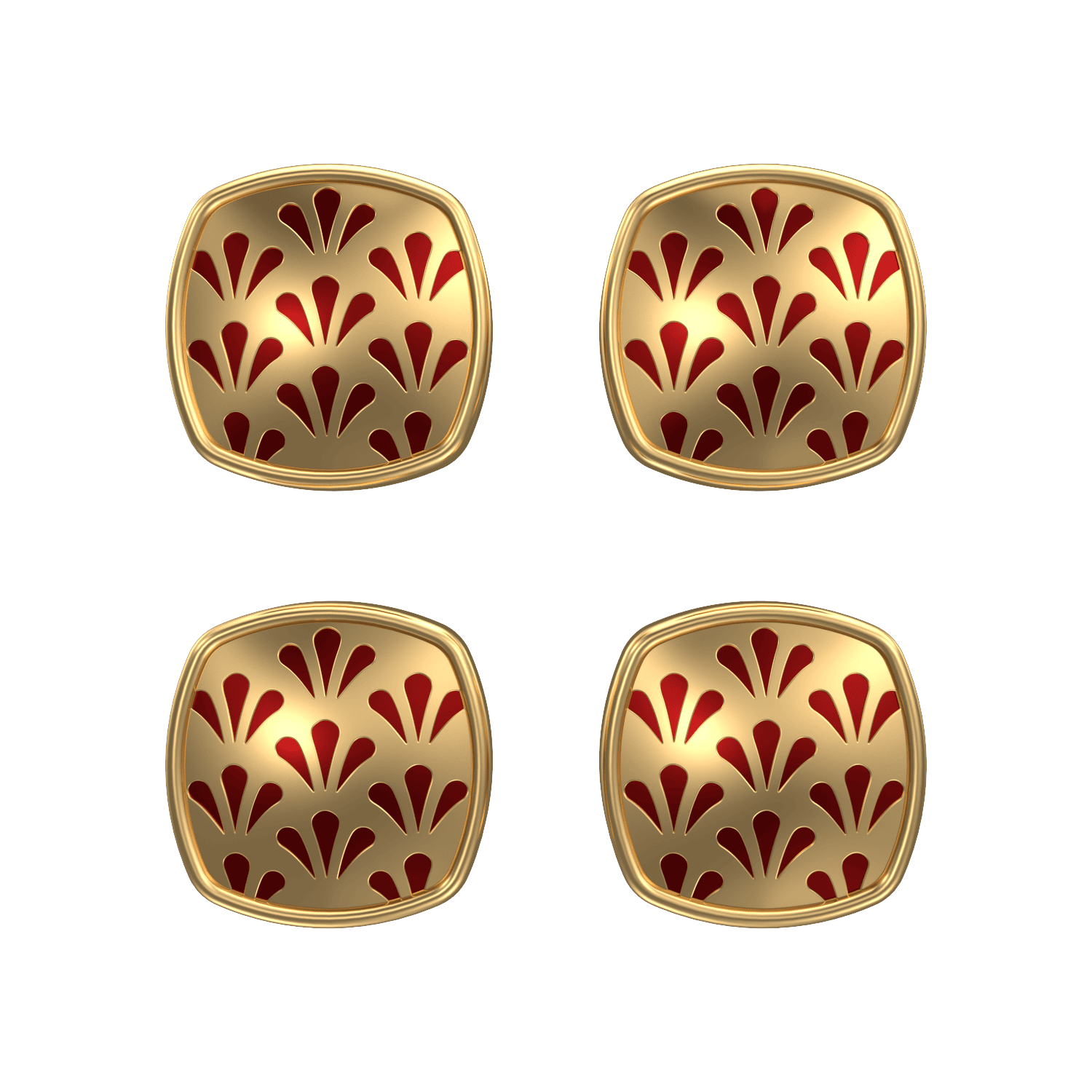 This design is inspired by Persian era architecture exuding Royalty. This Handcrafted Classic Kurta Button Set comes with 18kt Gold Plating and Enamel. Add flair and wear them on your Kurta.