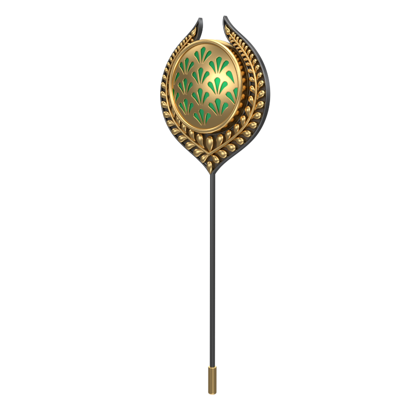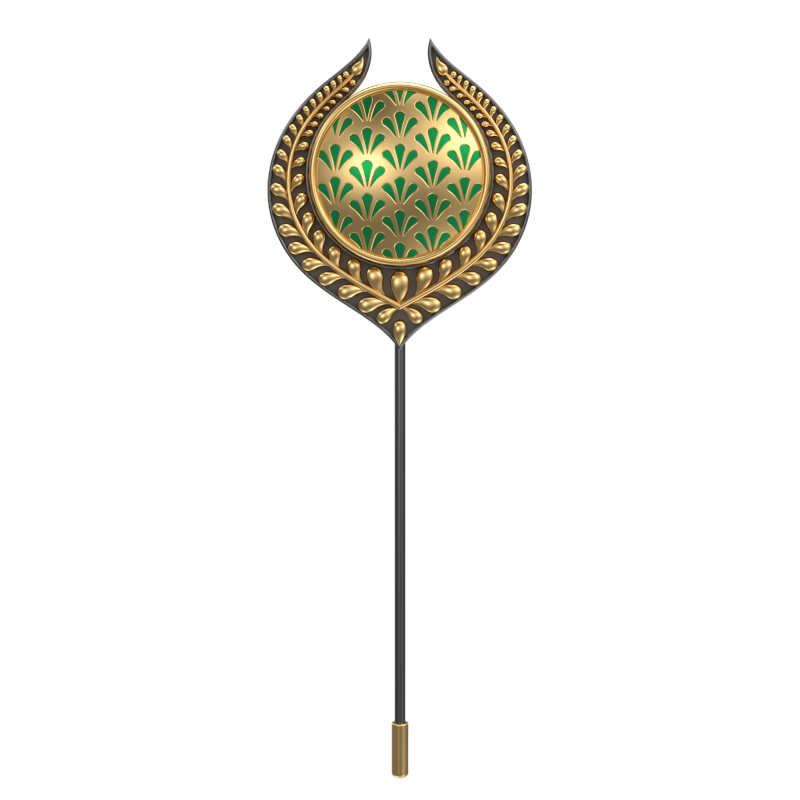 The design is inspired by Persian era architecture exuding Royalty. This Handcrafted Classic Lapel comes with 18kt Gold & Black Ruthenium Plating and Enamel. Add a litte character and individuality while wearing them with your Suit, Bandhgala, Sherwani, Nehru Jacket or a Shirt