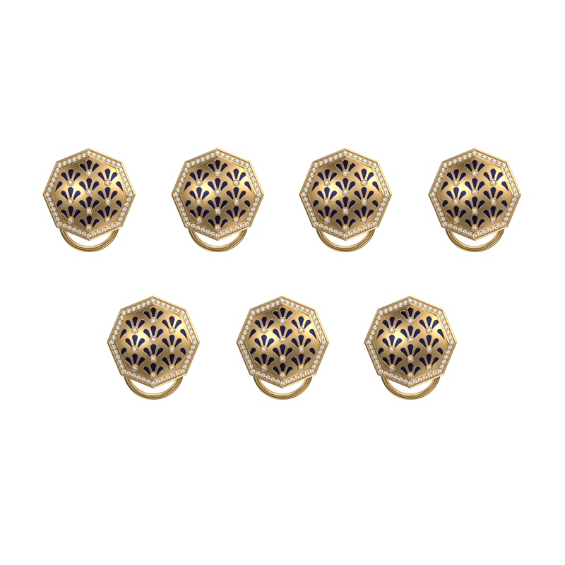 This design is inspired by Persian era architecture exuding Royalty. This Handcrafted Classic Button Set comes with 18kt Gold Plating, Enamel and studded with CZ Diamonds. Add flair and wear them on your Sherwanis, Achkans & Bandhgalas.