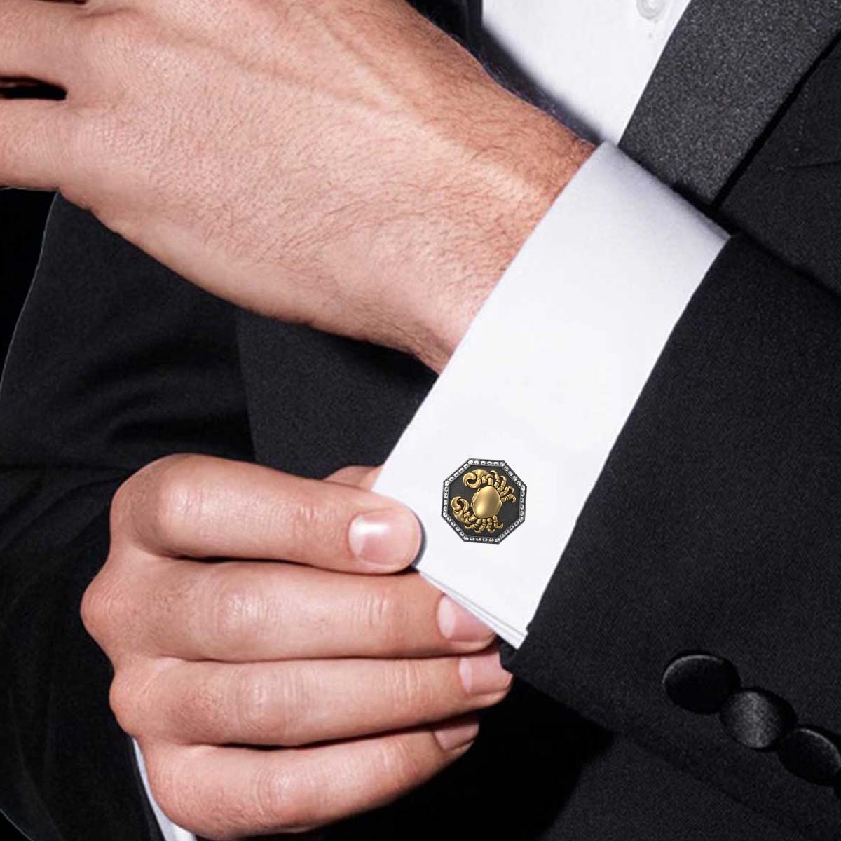 This design is inspired by the stars and zodiac signs. This Constellation Handcrafted Cufflink Set comes with 18kt Gold & Black Ruthenium Plating & studded with CZ Diamonds. Pair them with your Shirt, Kurta or Suit to complete the exquisite personalized look.
