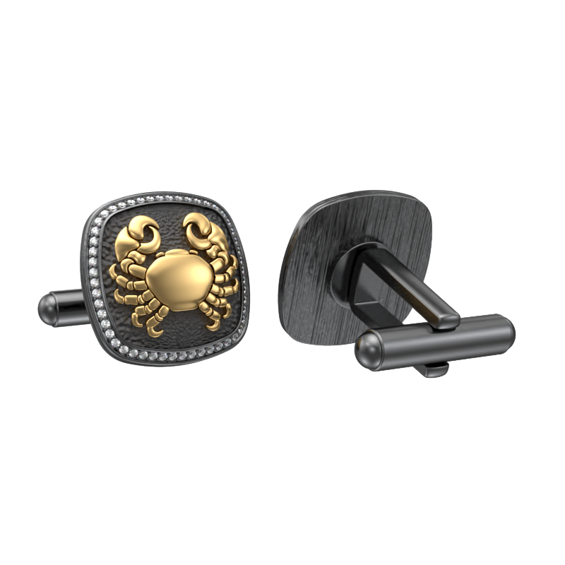 Cancer Zodiac Luxe, Constellation Cufflink Set with CZ Diamonds, 18kt Gold & Black Ruthenium Plating on Brass.