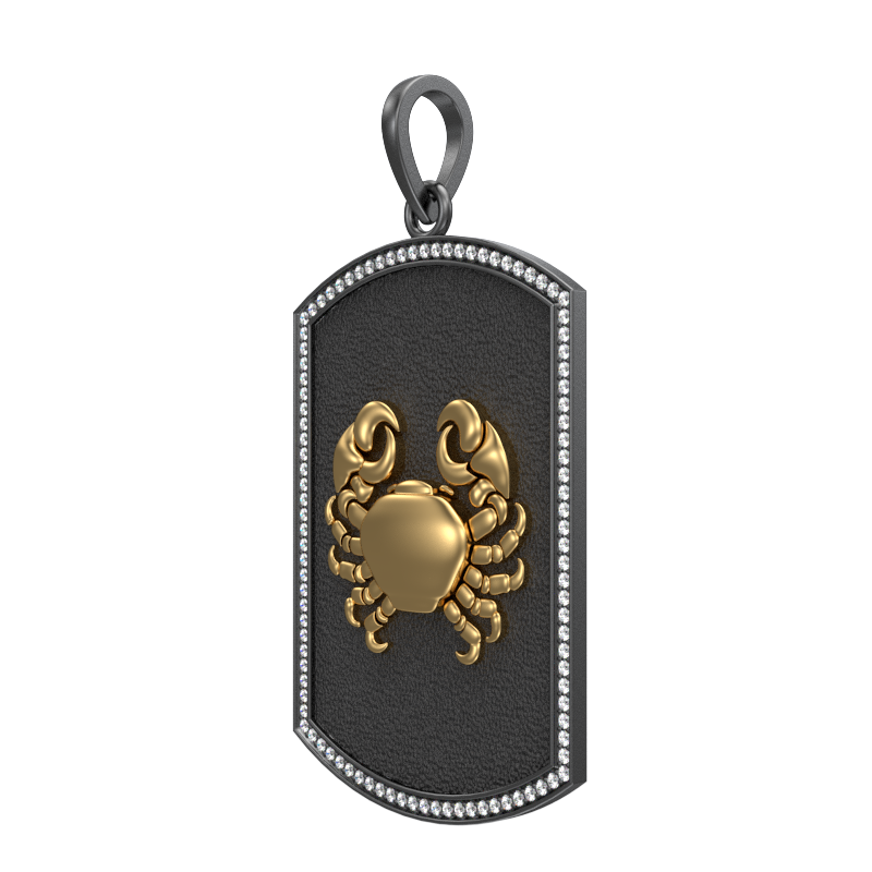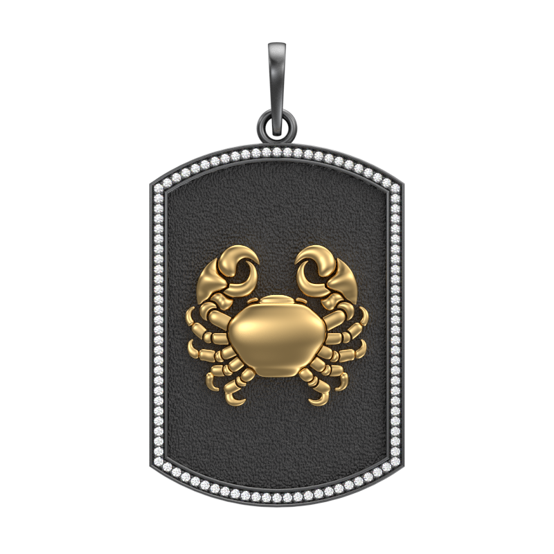 Cancer Zodiac Luxe, Constellation Pendant with CZ Diamonds, 18kt Gold & Black Ruthenium Plating on Brass.