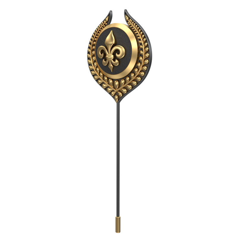 Fleur di lis, Leaf Spiritual Lapel with 18kt Gold & Black Ruthenium Plating on Brass.