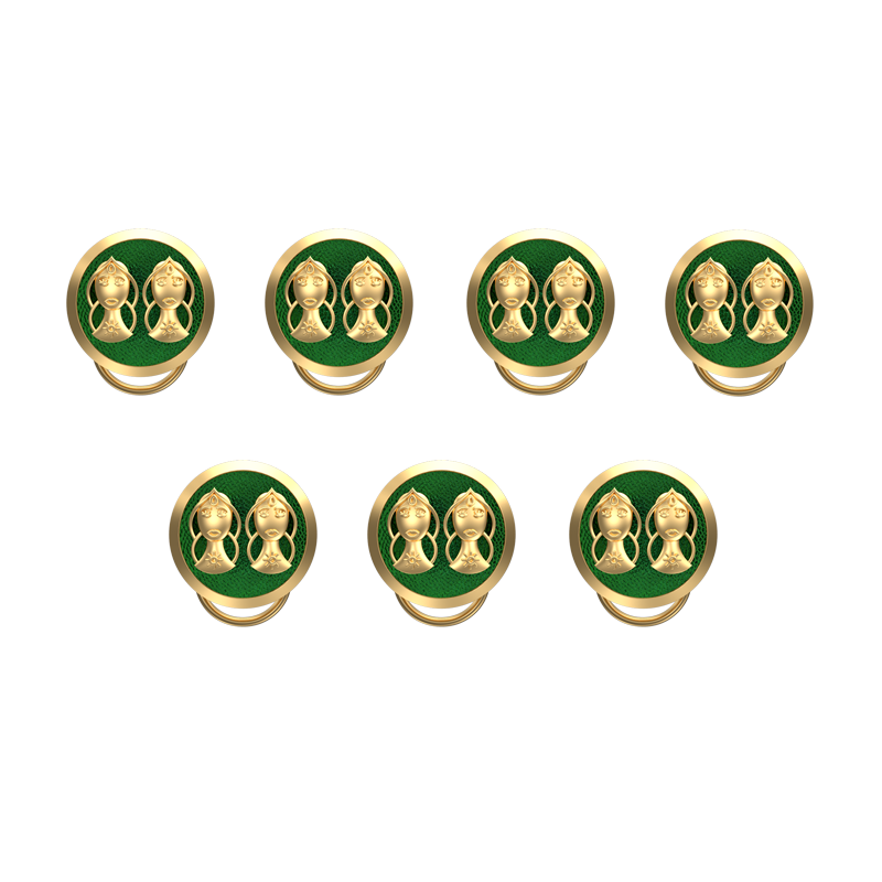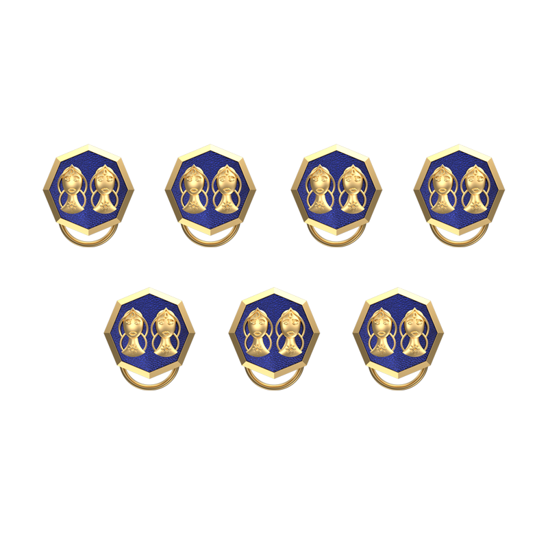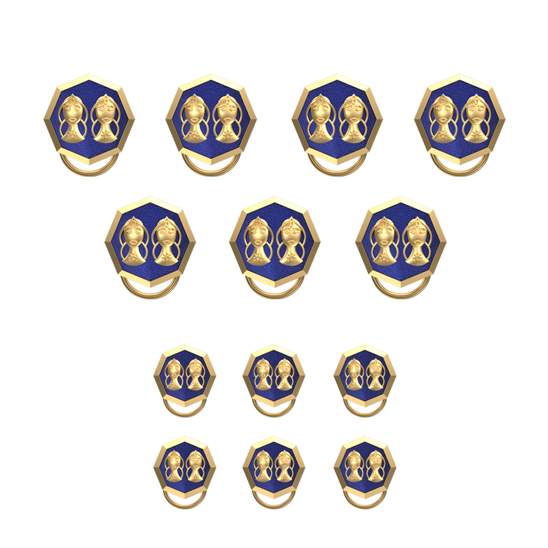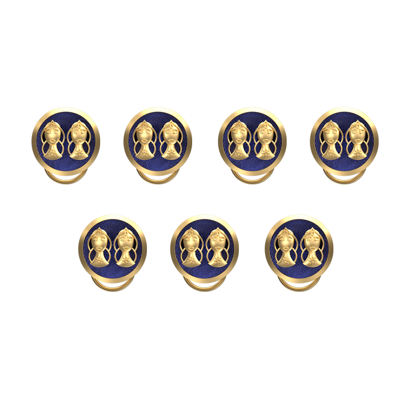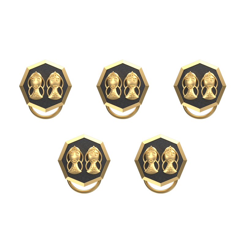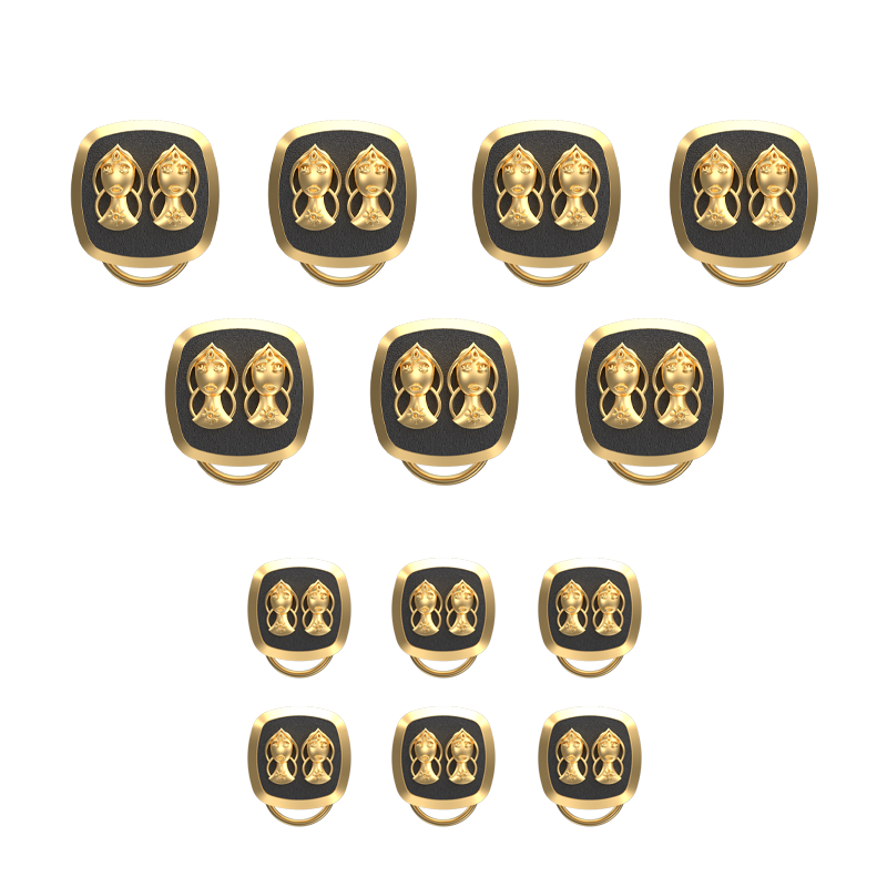 This Design is inspired by the stars and zodiac signs. This Handcrafted Constellation Button set comes with 18kt Gold & Black Ruthenium Plating. Add flair and wear them on your Sherwanis, Achkans & Bandhgalas. Big Size 20mm and Small Size 15mm Disclaimer: Handcrafted products are admired for its minute imperfections. All our products are Handcrafted by skilled artisans & therefore may carry minute imperfections. The Colour of the actual product may vary from the image |