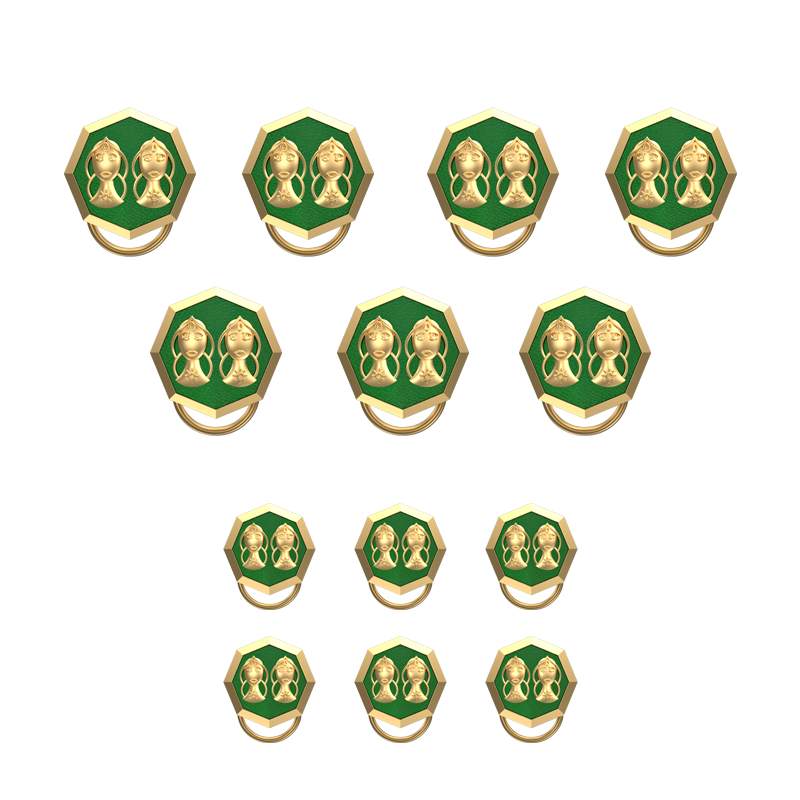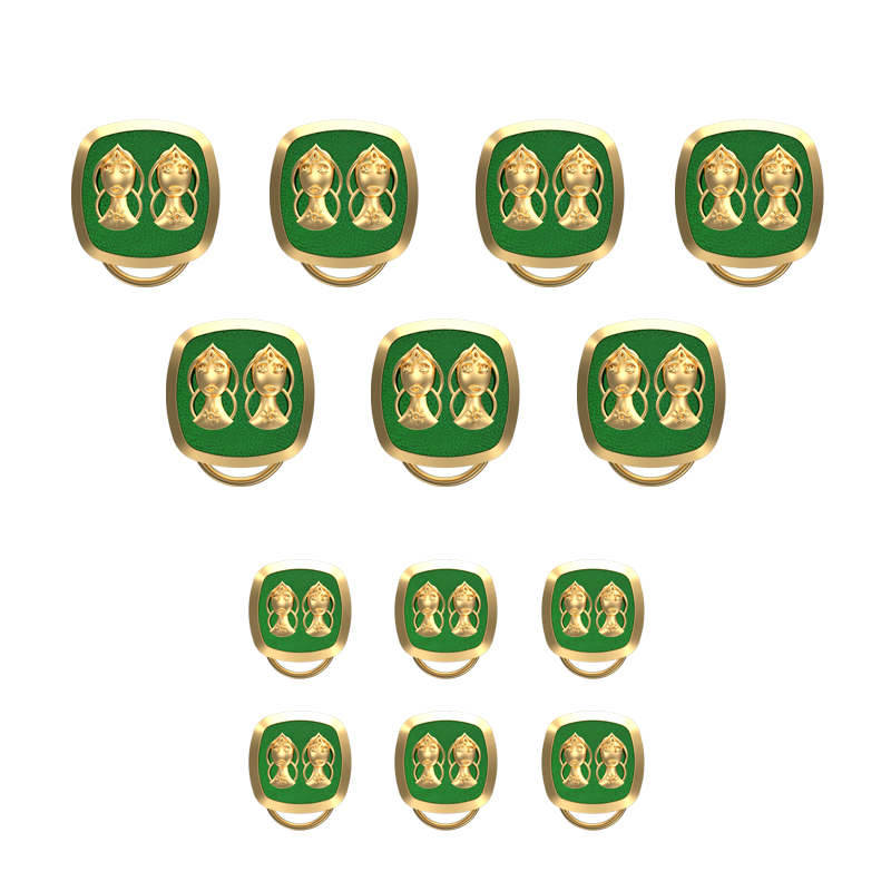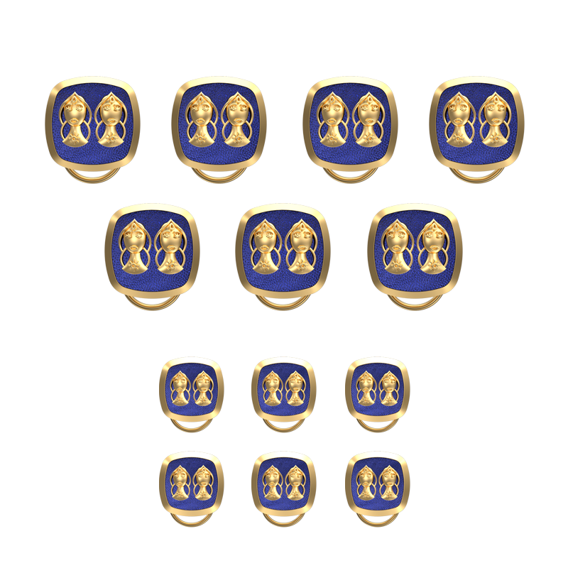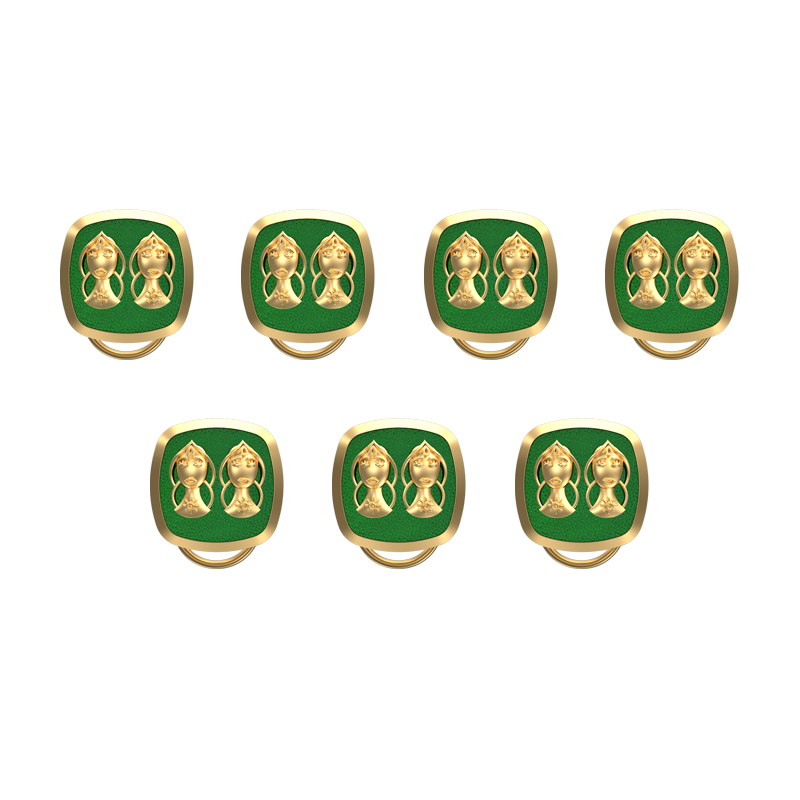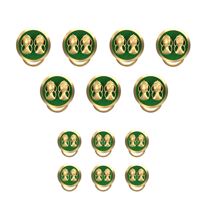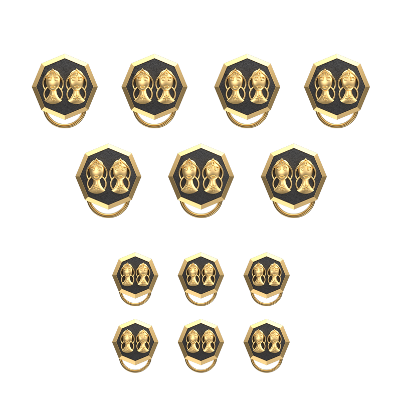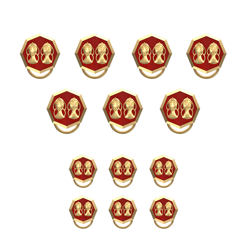 This Design is inspired by the stars and zodiac signs. This Handcrafted Constellation Button set comes with 18kt Gold & Black Ruthenium Plating. Add flair and wear them on your Sherwanis, Achkans & Bandhgalas. Big Size 20mm and Small Size 15mm Disclaimer: Handcrafted products are admired for its minute imperfections. All our products are Handcrafted by skilled artisans & therefore may carry minute imperfections. The Colour of the actual product may vary from the image |