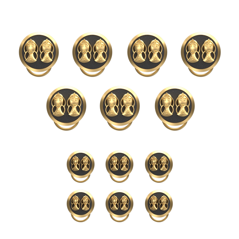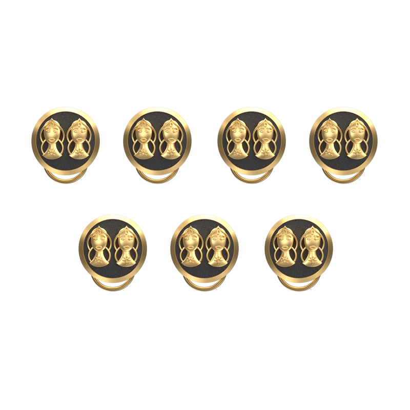 Gemini Zodiac, Constellation Button set with 18kt Gold & Black Ruthenium Plating on Brass.