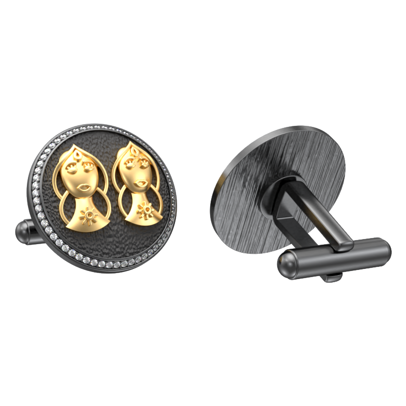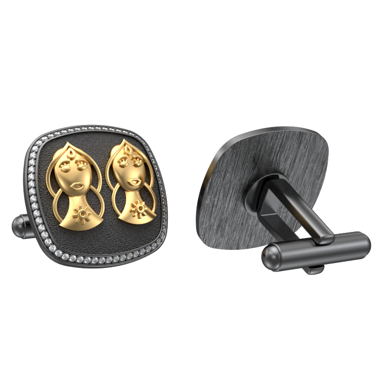 Gemini Zodiac Luxe, Constellation Cufflink Set with CZ Diamonds, 18kt Gold & Black Ruthenium Plating on Brass