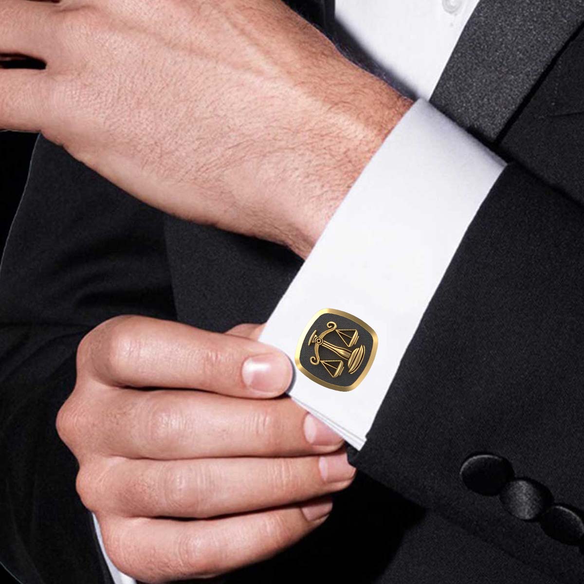 Libra Zodiac , Constellation Cufflink Set with 18kt Gold & Black Ruthenium Plating on Brass.