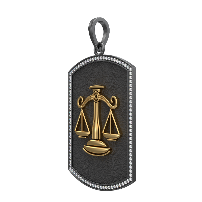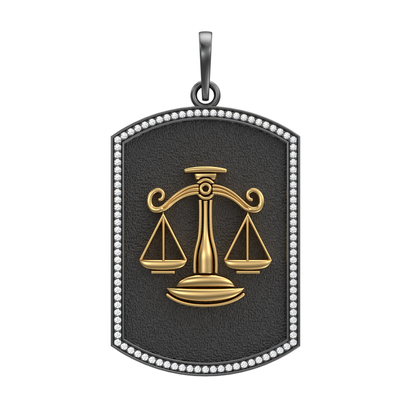 Libra Zodiac Luxe, Constellation Pendant with CZ Diamonds, 18kt Gold & Black Ruthenium Plating on Brass.