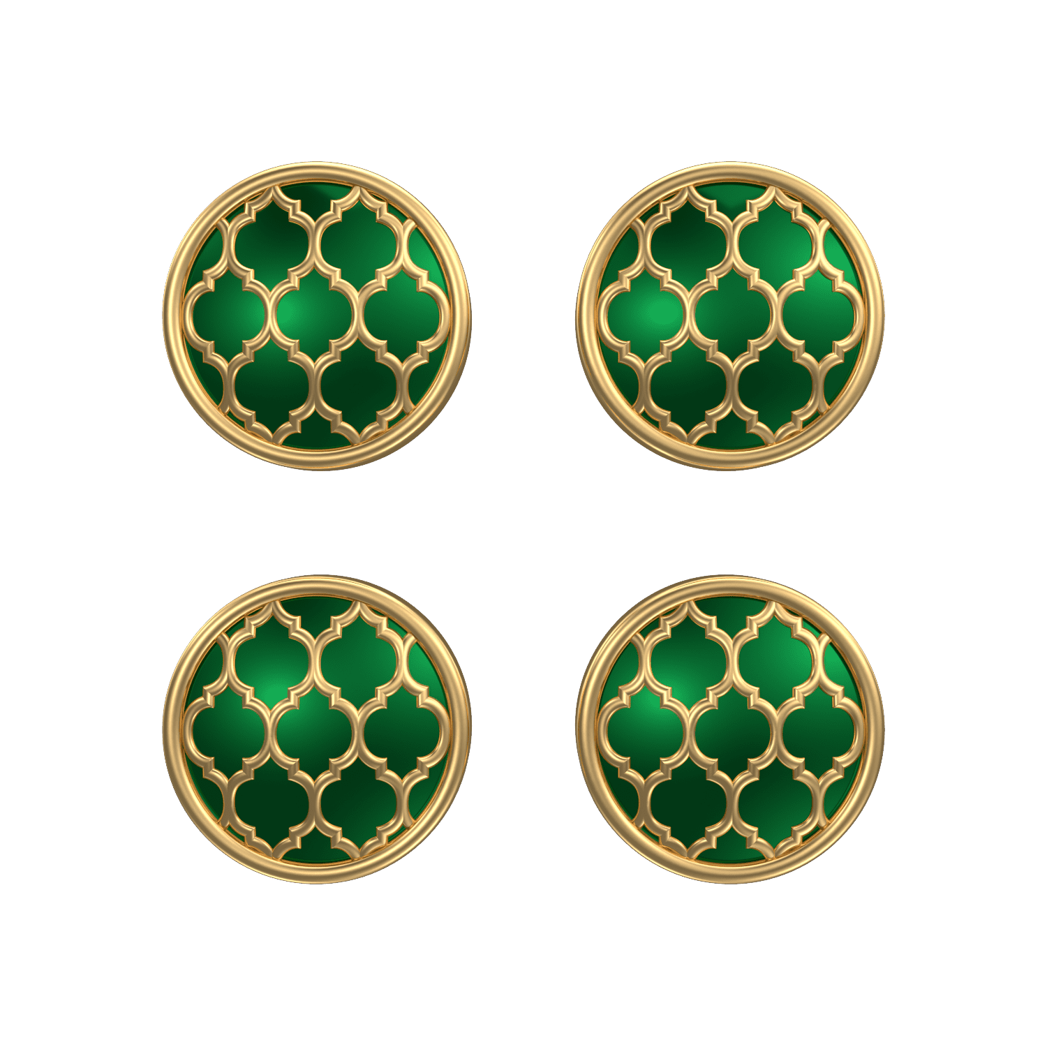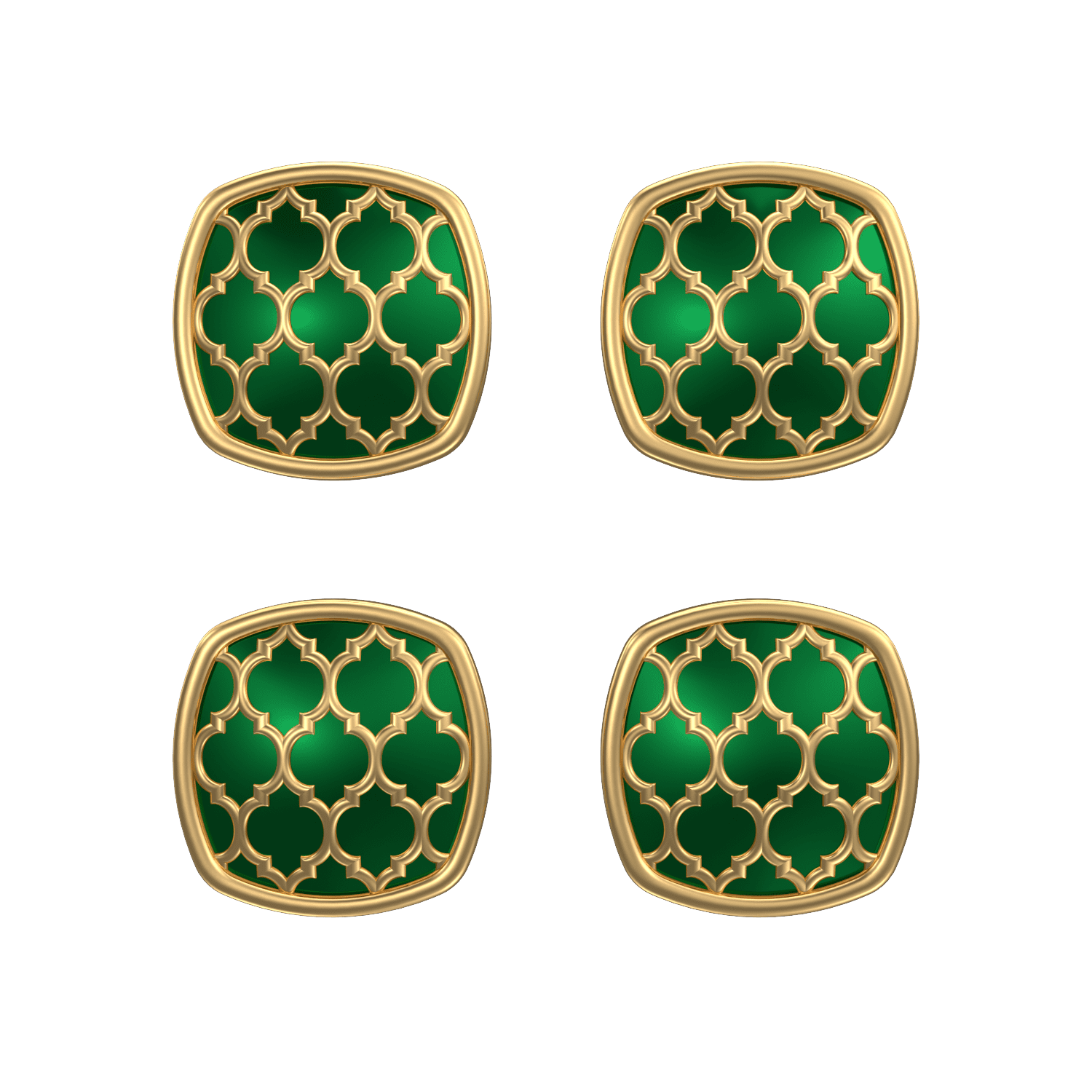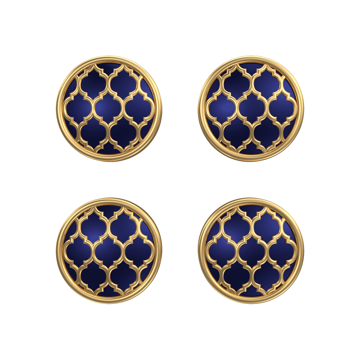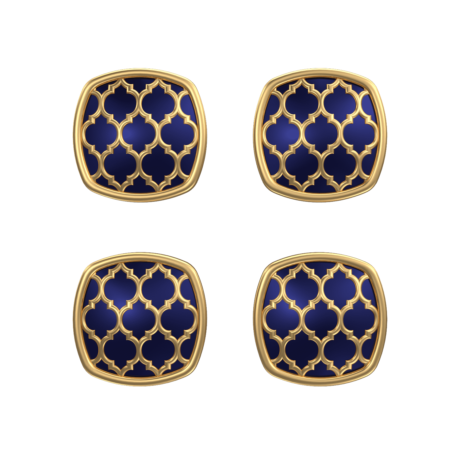 This design is inspired by Persian era architecture exuding Royalty. This Handcrafted Classic Kurta Button Set comes with 18kt Gold Plating and Enamel. Add flair and wear them on your Kurta.