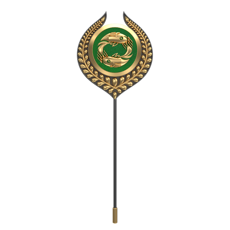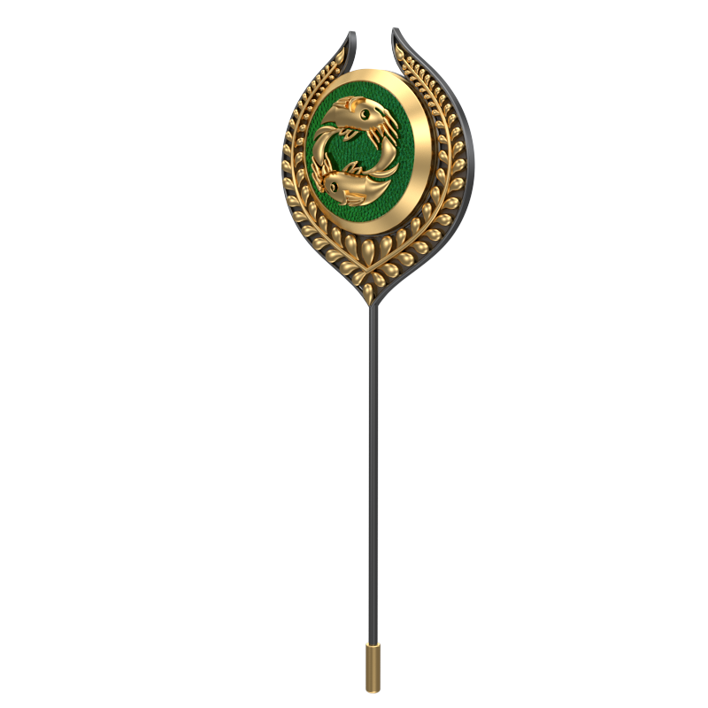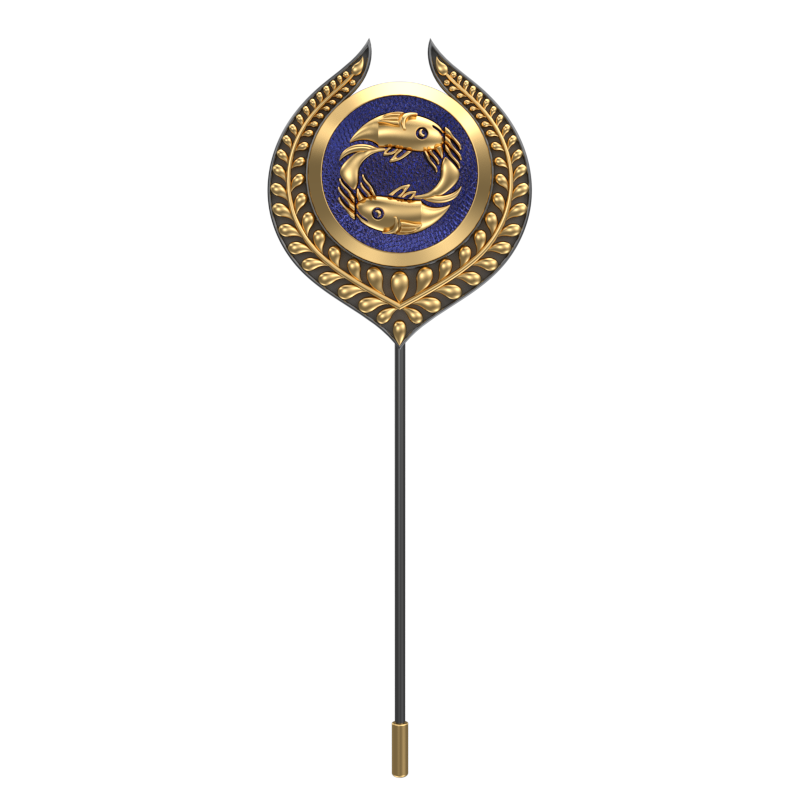 Pisces Zodiac, Leaf Constellation Lapel with 18kt Gold & Black Ruthenium Plating and Enamel on Brass.