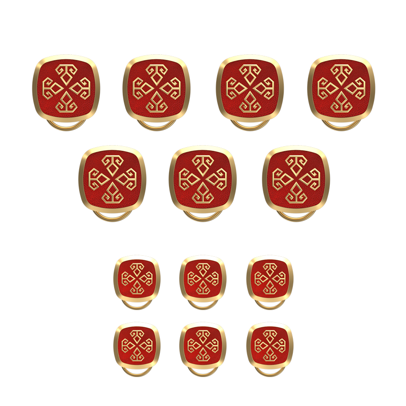 This design is inspired by mystic energies and self beliefs. This Handcrafted Spiritual Button set comes with 18kt Gold & Black Reuthenium Plating. Add flair and wear them on your Sherwanis, Achkans & Bandhgalas