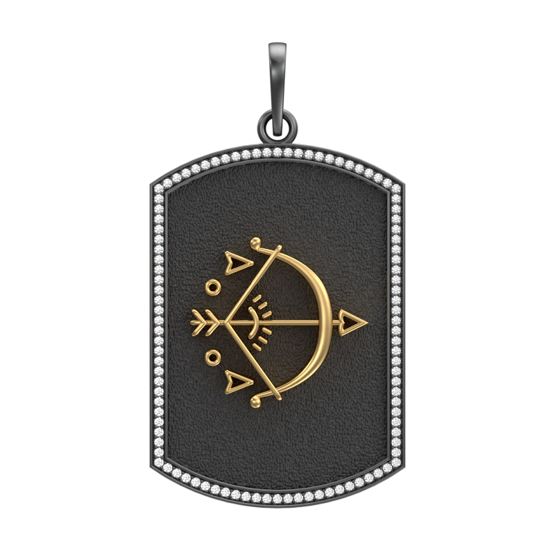 Sagittarius Zodiac Luxe, Constellation Pendant with CZ Diamonds, 18kt Gold & Black Ruthenium Plating on Brass.