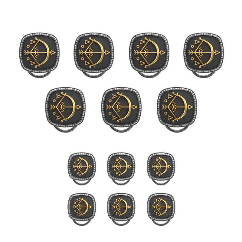 Sagittarius Zodiac Luxe, Constellation Button set with CZ Diamonds, 18kt Gold & Black Ruthenium plating on Brass.