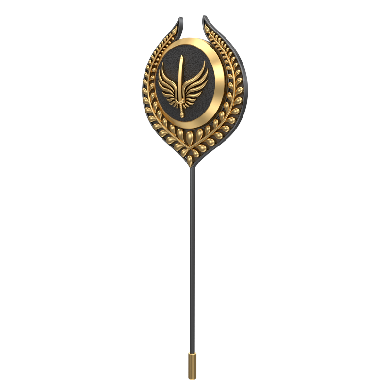 Viking Sword ,Leaf Edgy Lapel with 18kt Gold & Black Ruthenium Plating and Enamel on Brass.